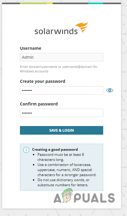 - To start off, if this is the first time you are using the Orion Web Console, you will be asked to set up a password for the Admin account. Go ahead and do that and then click the Save and Login button.