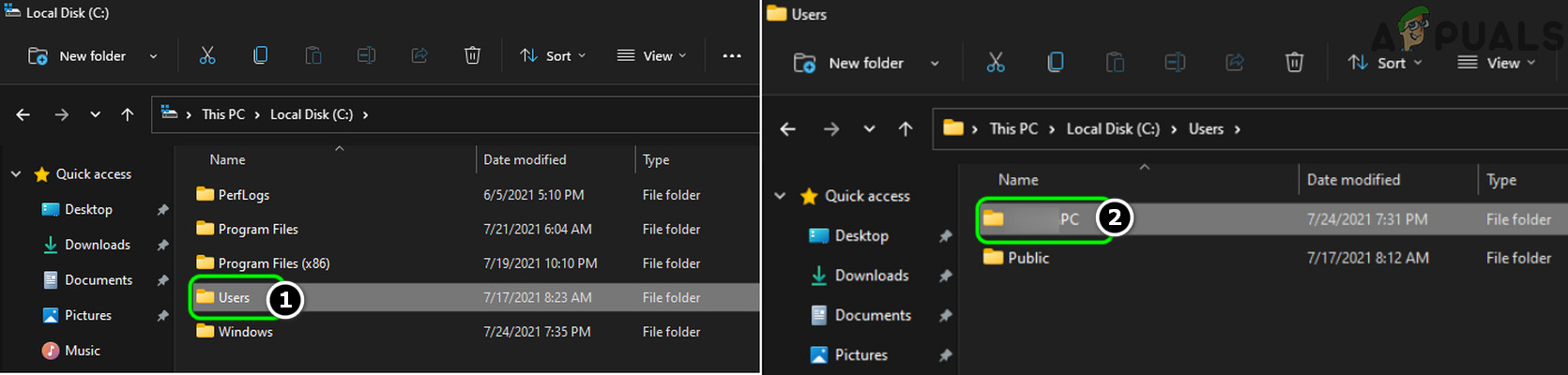 Open the System Drive of Windows 11 - Open the Users folder, then select the folder that matches your username.