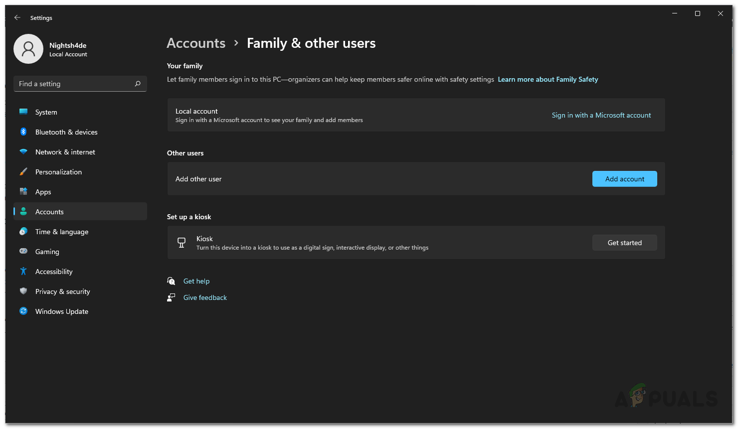 Windows Settings - Next, click Family & other users under the Accounts section.