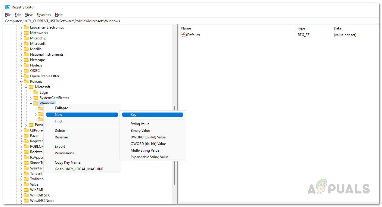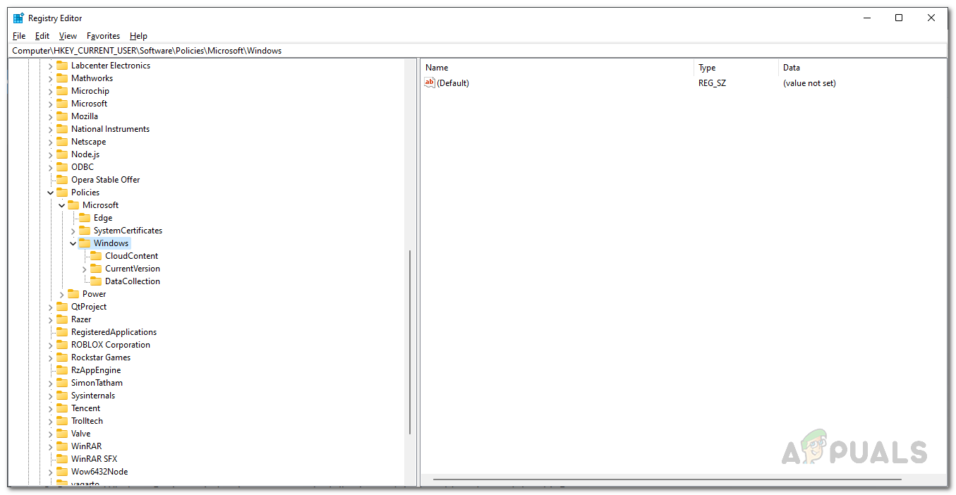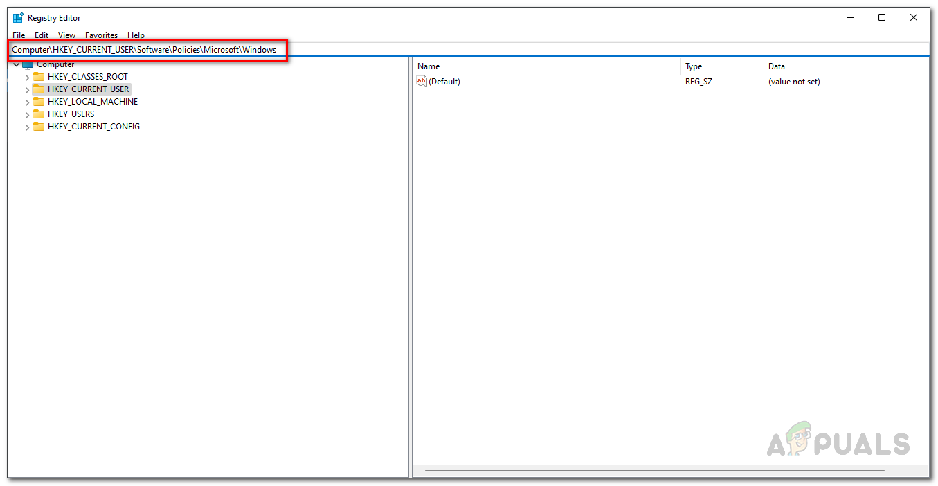 Computer\HKEY_CURRENT_USER\Software\Policies\Microsoft\Windows