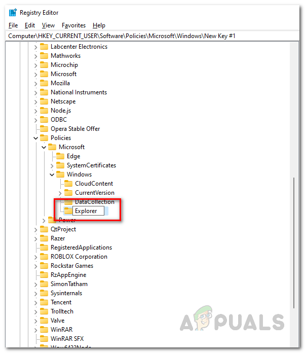 Navigating to Appropriate Location - Now, look under the Windows key to see if you have an Explorer key.