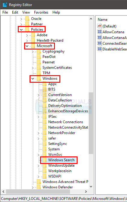 - Navigate to HKEY_LOCAL_MACHINE\SOFTWARE\Policies\Microsoft\Windows\Windows Search. If you’re unsure how to get there, follow these steps: