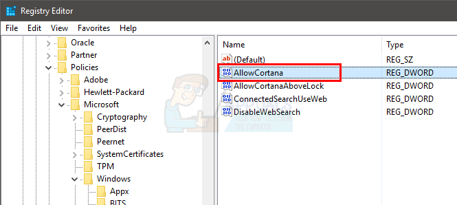 - Then right-click in the right panel, select New > DWORD (32-bit) Value, and name it AllowCortana.