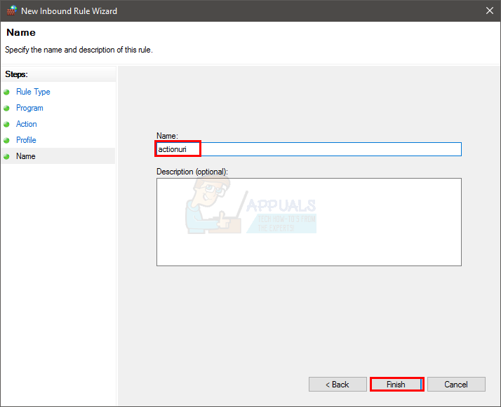 - Give the rule any name (for example, “Block ActionUri OOP Server”) and click Finish.
