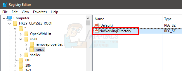 - Make sure runas is selected, then double-click (Default) in the right panel.