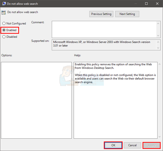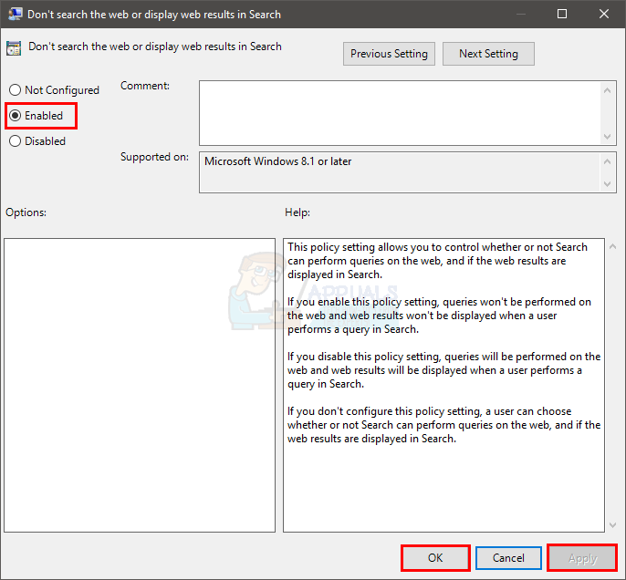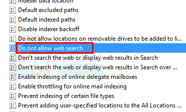 - Double-click Don’t search the web or display web results in Search in the right panel.
