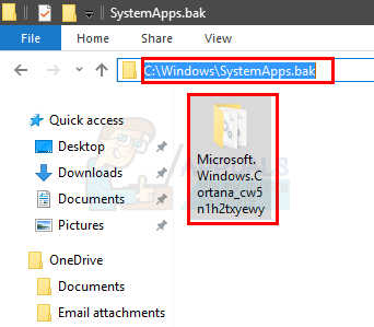 - Go back to the Windows directory, open the SystemApps.bak folder you created, and paste the Cortana folder there (press CTRL + V).