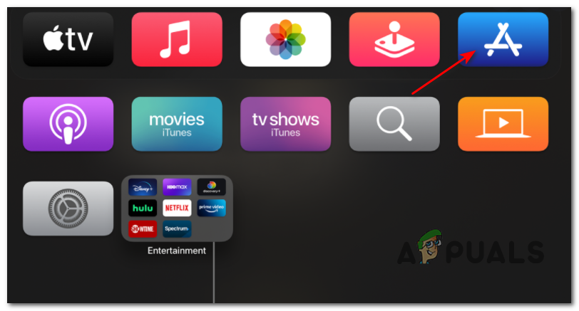- From the home screen of your Apple TV device, access the App Store.