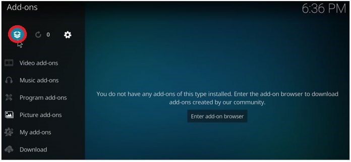 - Open Kodi and go to the home screen. Click on Add-ons.
