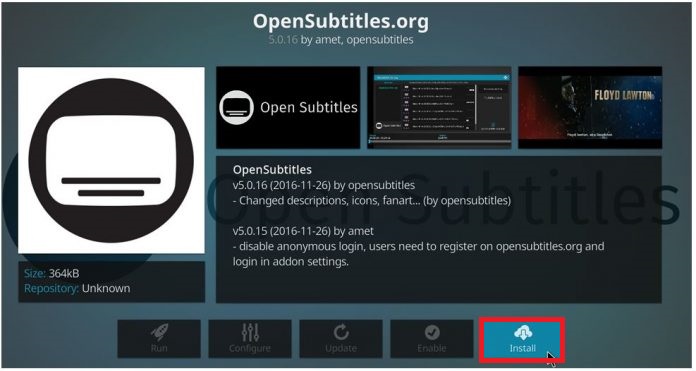 - It’s a good idea to install at least 3 subtitles add-ons. To install one, simply click on its entry and press Install.
