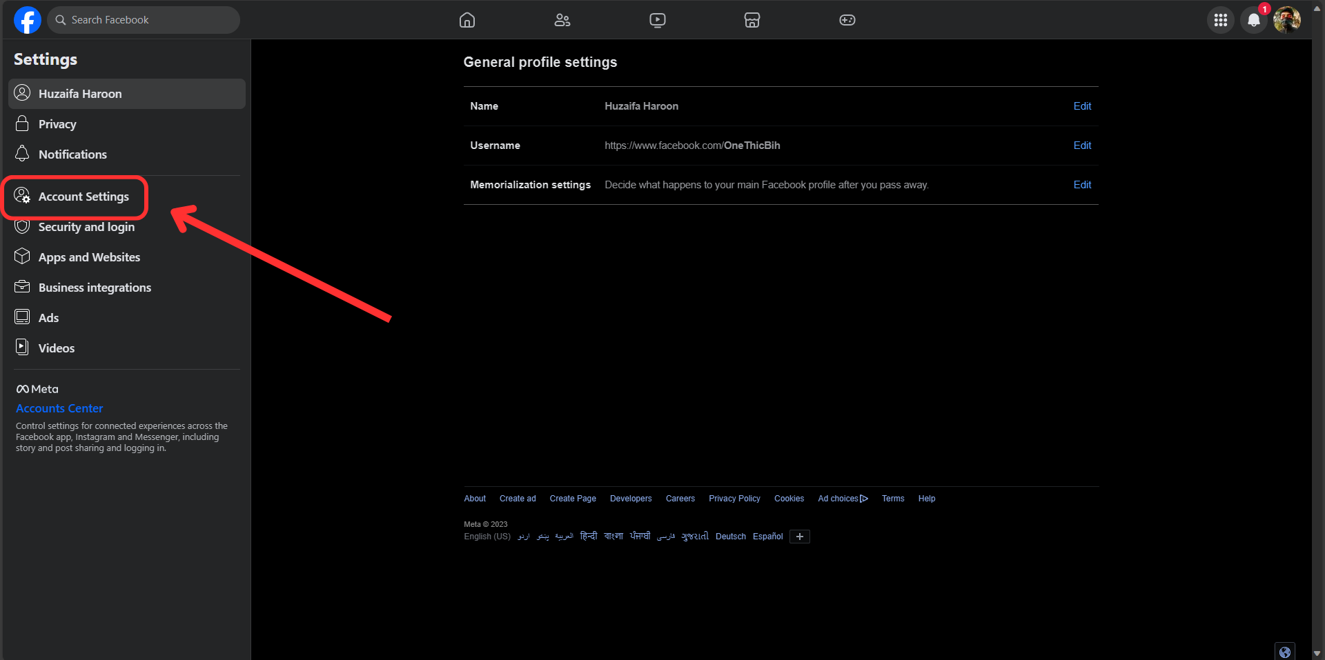 In Settings & Privacy, click Settings - From the left-hand menu, select Account Settings.