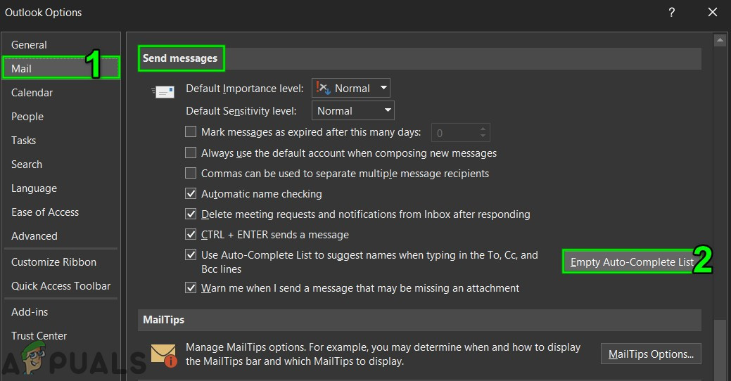 The Address List Cannot Be Displayed in Outlook (Fix)