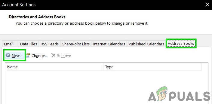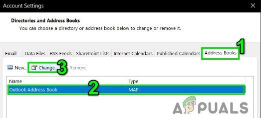 Open Account Settings of Outlook - Go to the Address Books tab.