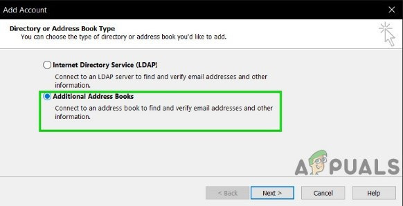 Select Additional Address Books - Choose Outlook Address Book and click Next. (If you use a different type, select that.)