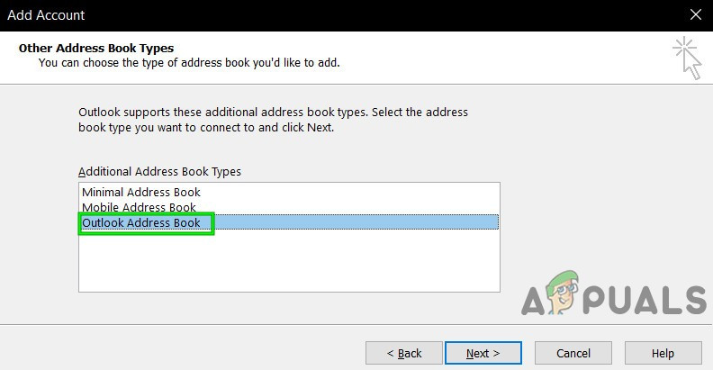 Note: If you don’t see the Outlook Address Book option, start from step 7 below.