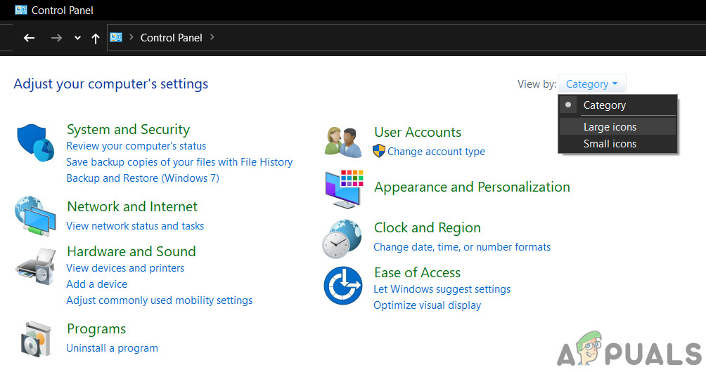 Open Control Panel - Near the top right, set “View by” to Large Icons.