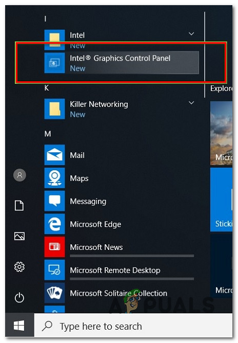 - Press the Windows key to open the Start menu, then search for and open the Intel Graphics Control Panel.