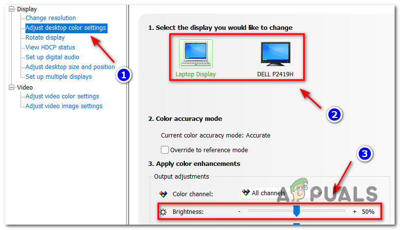Adjusting the Brightness level via Nvidia Control Panel - Scroll down to Output adjustments and use the Brightness slider to change your screen brightness to your liking.