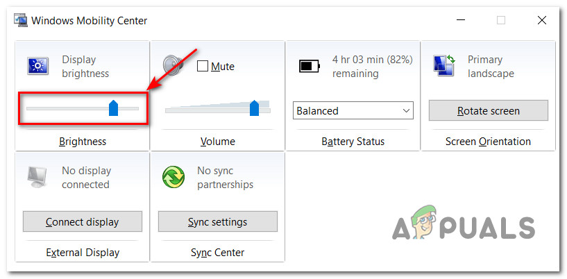 Adjusting the brightness via the Windows mobility center - When you’re finished, you can close Mobility Center.