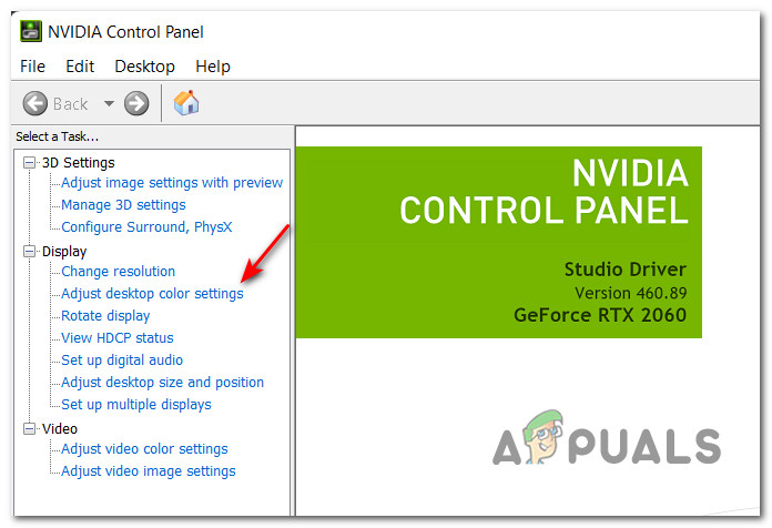 - In Nvidia Control Panel, click Adjust desktop color settings under Display in the left pane.