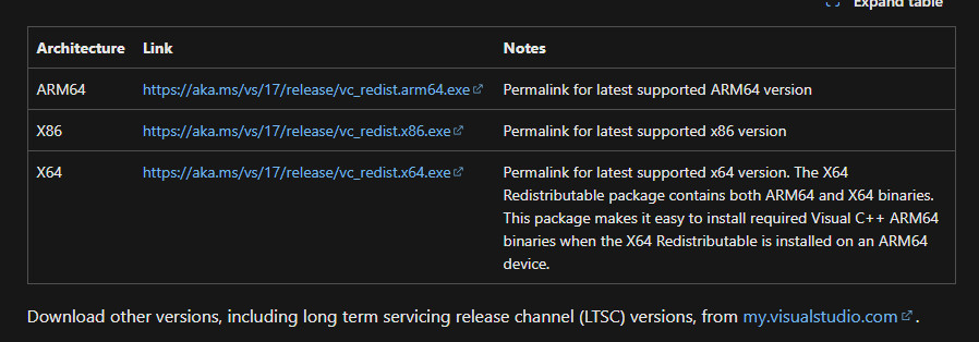 - Download and install the latest redistributable packages for your system (e.g., VC++ 2015–2022).