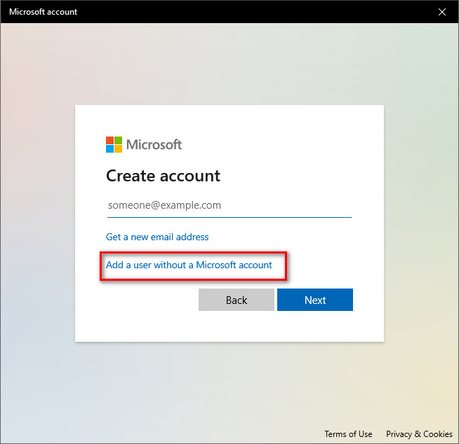- Select I don’t have this person’s sign-in information, then click Add a user without a Microsoft account.