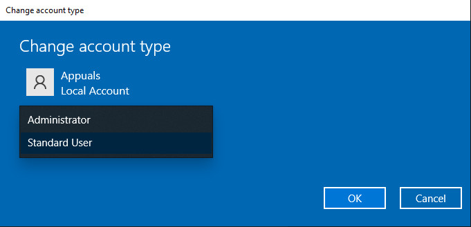 - Set it to Administrator, then click OK.