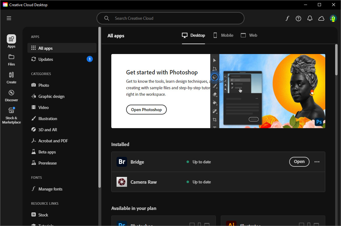 - Open Creative Cloud.