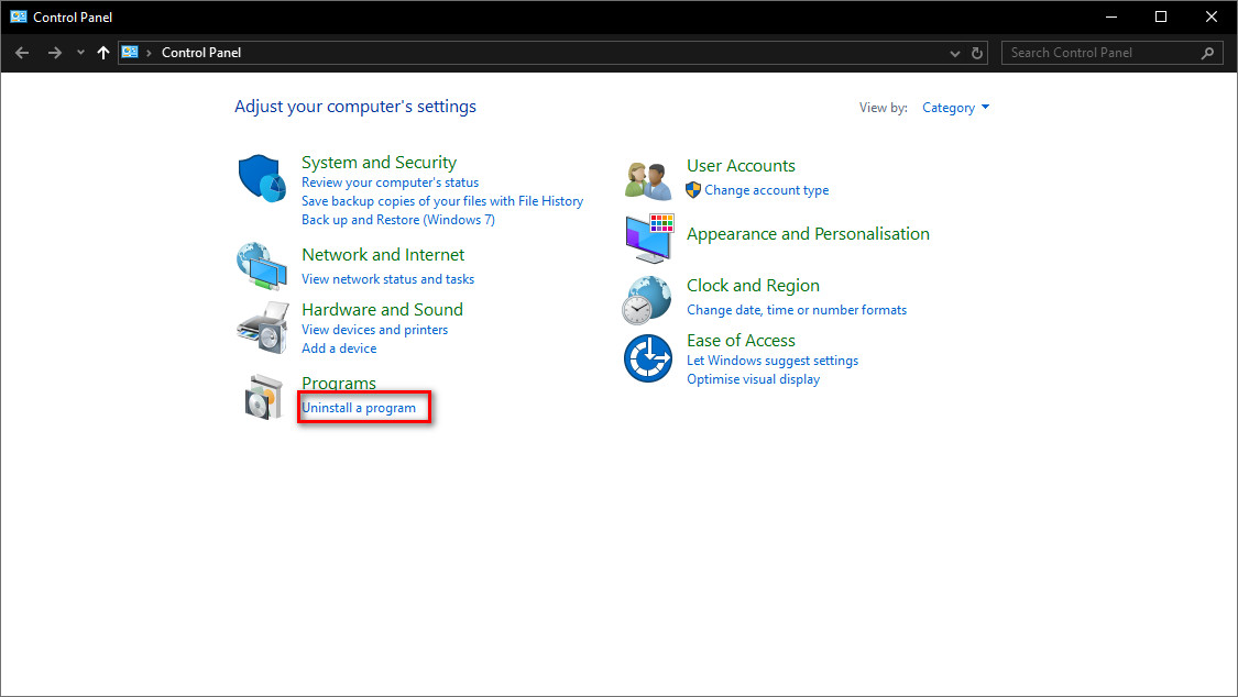 - Click on Uninstall programs.