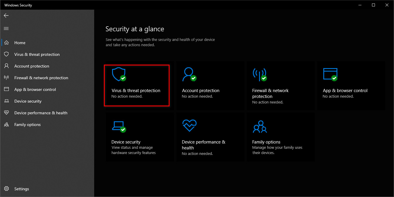 - Click on Virus and Threat Protection.