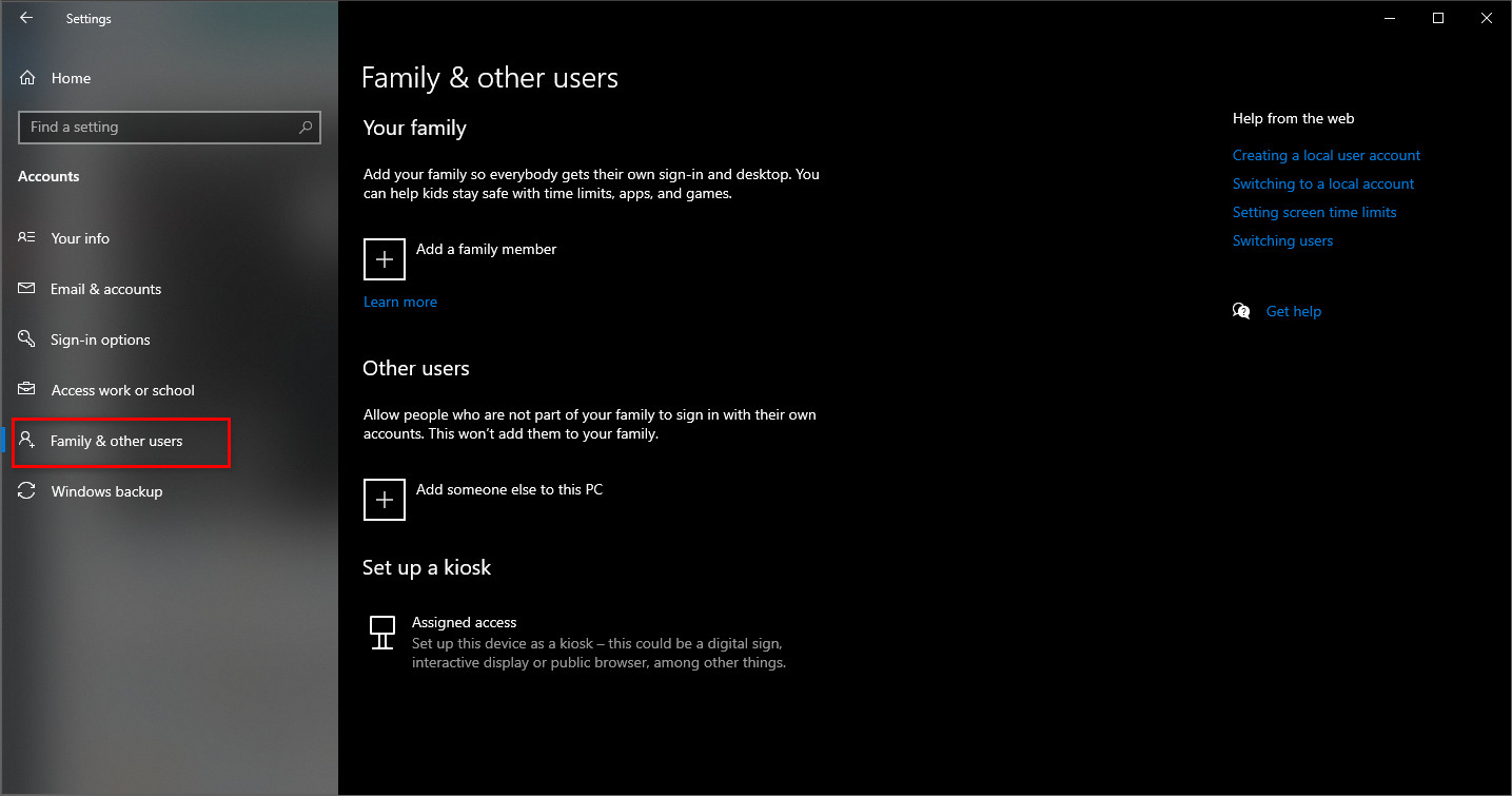 - Click Family & other users.