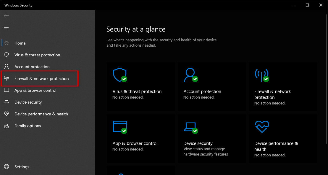 - Now, look for Firewall & network protection and click on it.
