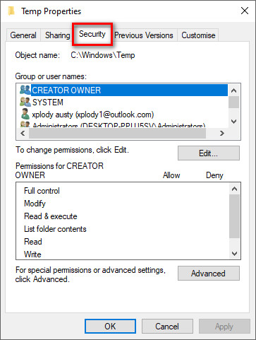 Go one by one through each folder’s properties. - Go to the Security tab.