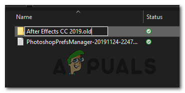 Adding the .old extension - Once the .old extension has been added, start After Effects once again and see if the problem is now resolved.