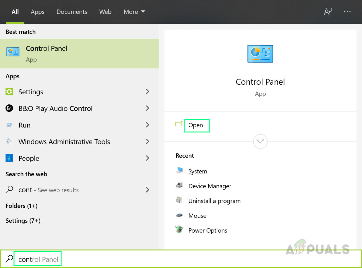 - Click Start, search for Control Panel, and open it.