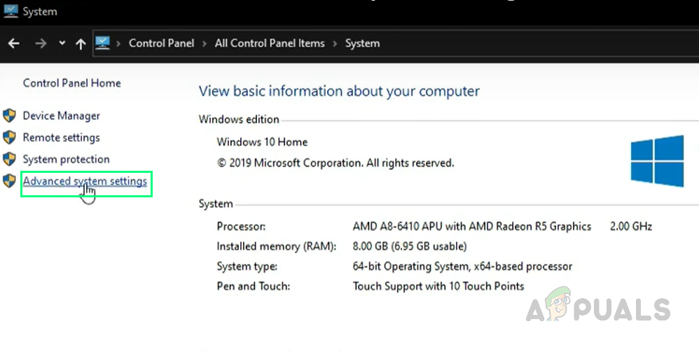 Opening System Settings - Now select Advanced System Settings.