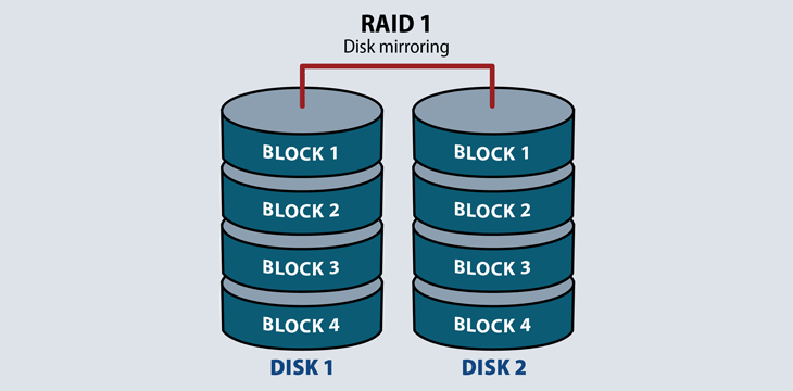 This configuration is also known as “Disk mirroring” and the strongest aspect of RAID 1 is the fault tolerance. Drives in this RAID array are exact replicas of each other, thus creating a bigger safety net should any drive fail in the array. Data is copied seamlessly from one drive to another and it is the simplest way to create a disk mirror at a relatively low cost.