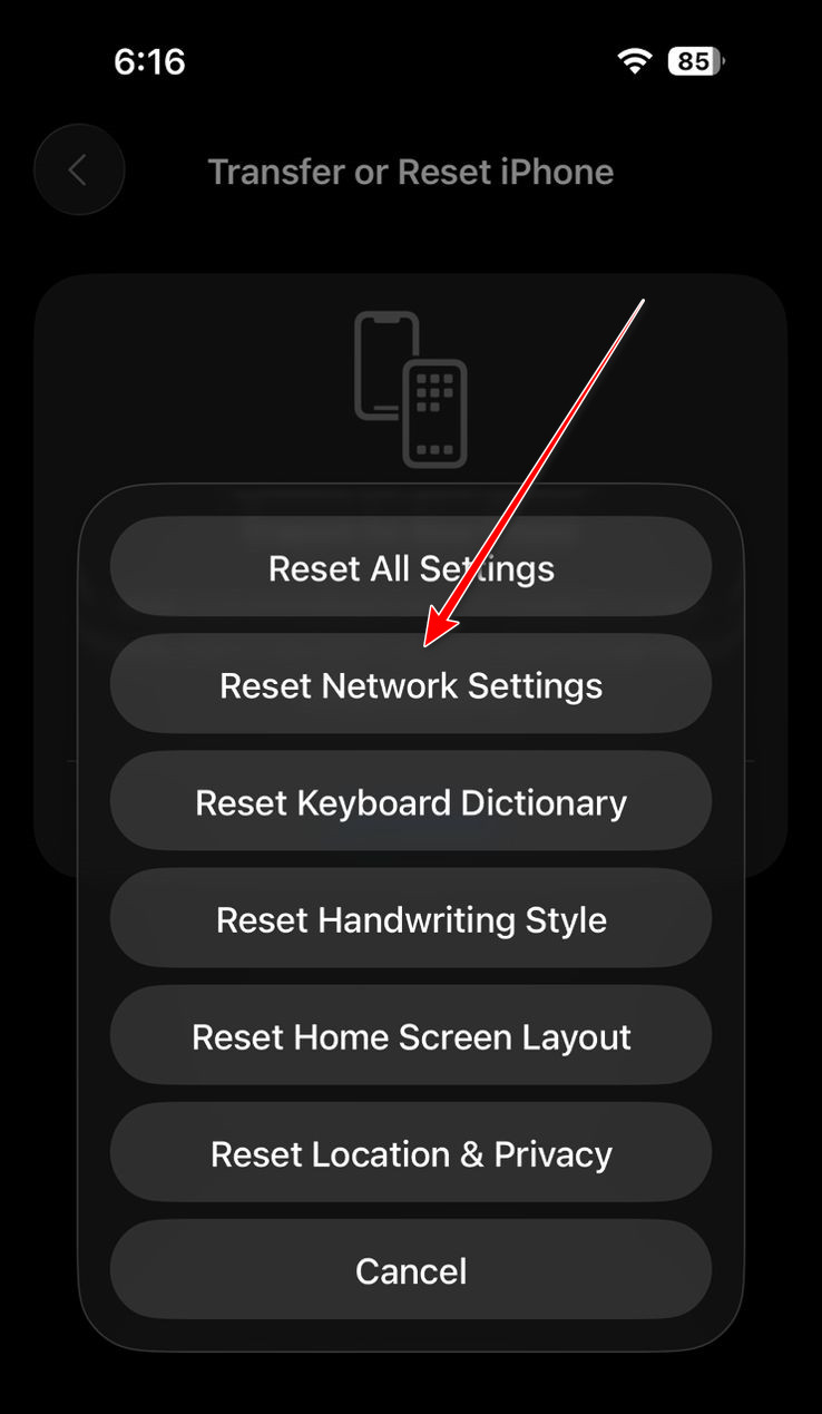 - Choose Reset Network Settings.