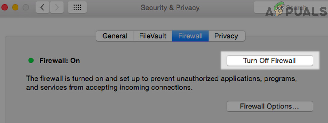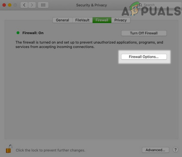 Open Security and Privacy in Mac’s System Preferences - Click the Firewall tab, click the padlock icon, and enter your administrator password.