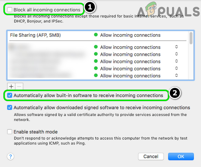 Adjust Firewall Settings in Mac’s Firewall - If the issue continues, try disabling the firewall completely to see if that solves the problem.