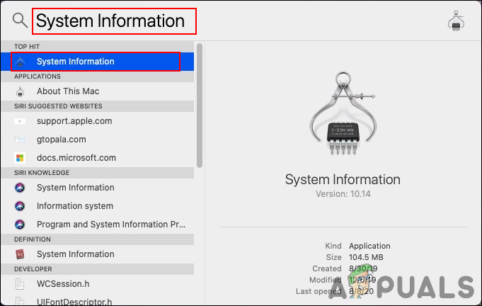 - Hold the Command key and press Space to open Spotlight. Type System Information and press Enter to open it.