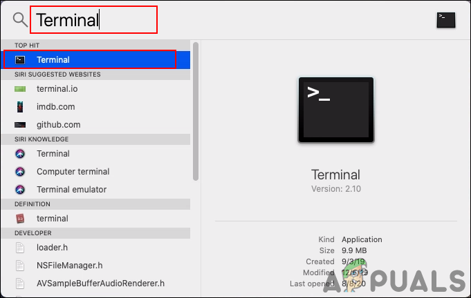 - Hold the Command key and press Space to open Spotlight. Type Terminal in the search bar and press Enter to open it.