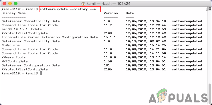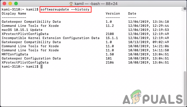 softwareupdate --history