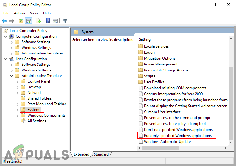 The Local Group Policy Editor is a tool that is used to configure settings for the operating system. There are different policy settings in the Group Policy Editor. The one we will be using in this method can be found under the User Configuration category. There is also one other setting that only restricts applications that you will add to the list in the setting rather than only allowing the few that you list.