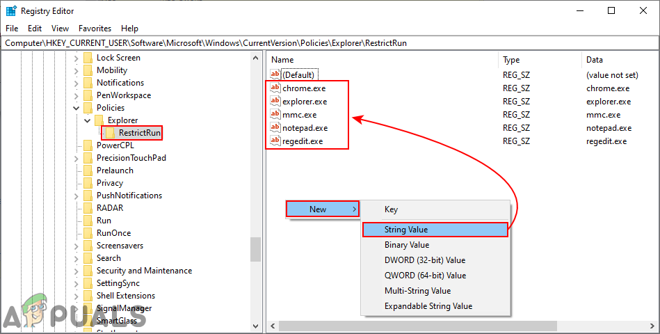 - To enable all the programs again on your system, you need to remove the executable names in value data or delete the values from the Registry.
