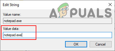 Creating string value for each program name - Open the value and add the string value as the executable name of the application.