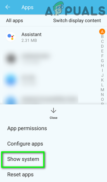 - Tap the three dots (vertical ellipsis, usually top right or bottom), then select Show System Apps.