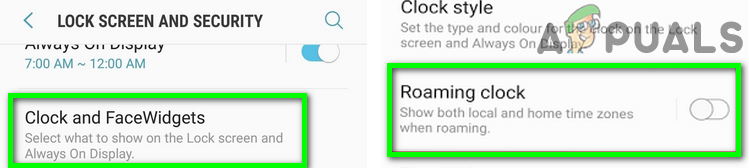 Open Lock Screen & Security in the Settings of Your Phone - Tap Clock and FaceWidgets, then turn off Roaming Clock.