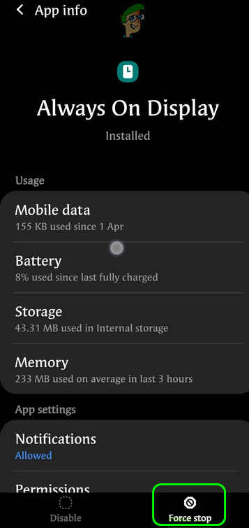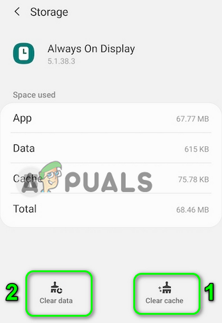 Force Stop Always on Display - Tap Storage, then select Clear Cache.