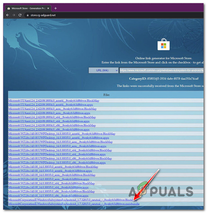 - First, download the installer package for the Windows Subsystem for Android. Microsoft doesn’t provide a direct download, so we’ll use a third-party site. Go to this online Microsoft Store link generator to get the download link.